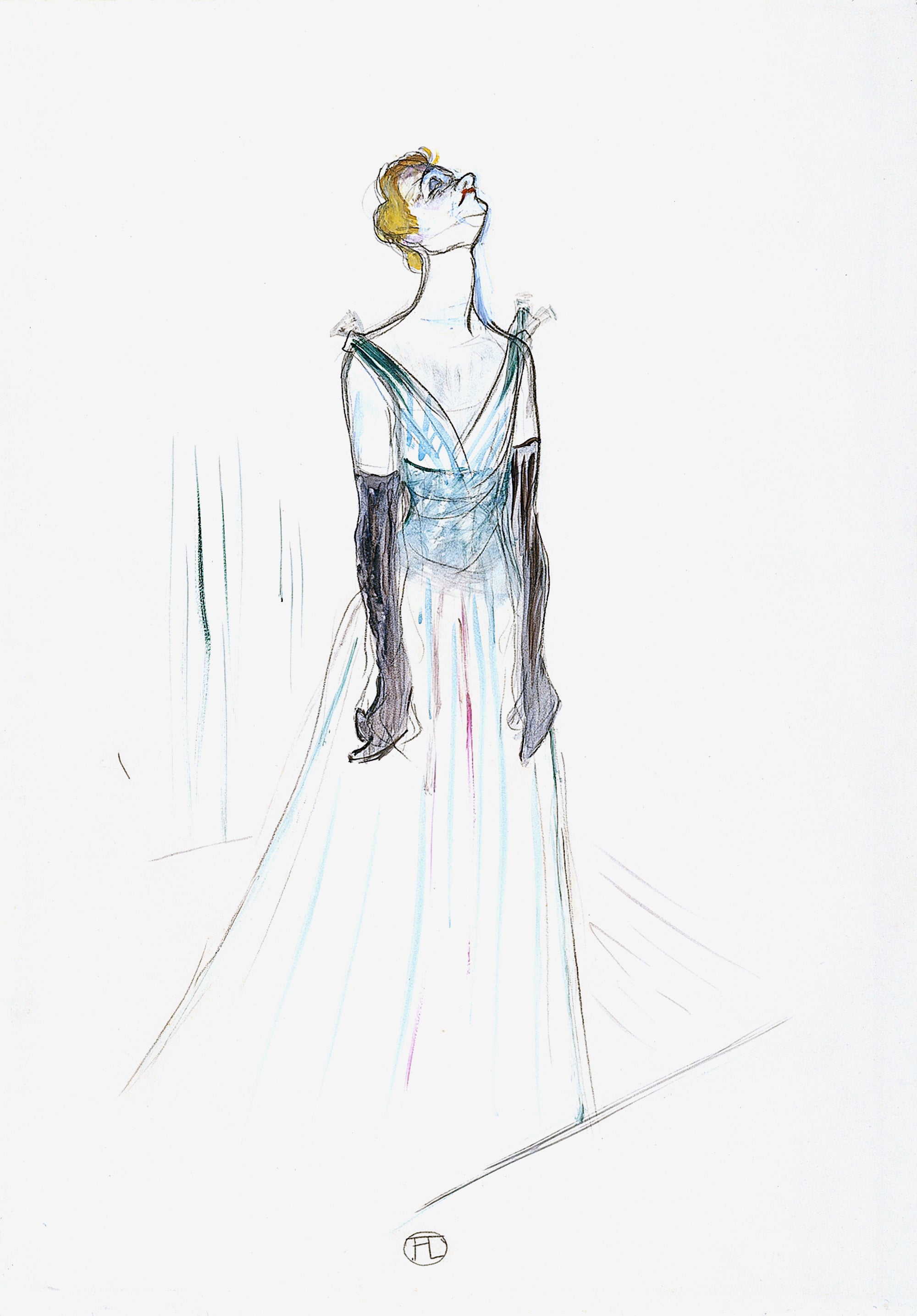 تقدم هذه اللوحة مشهدًا رمزيًا يوضح مسيرة واحدة من أشهر المغنيات في ذلك الوقت، إيفيت غيلبيرت. نرى وجهها التعبيري، وجه امرأة ساحرة على المسرح، تعبر العصور بفضل قوة العاطفة في أدائها. تولوز-لوتريك، بتقنيته الفريدة، يخلد الحركة والشغف المنبعثين من فنه.